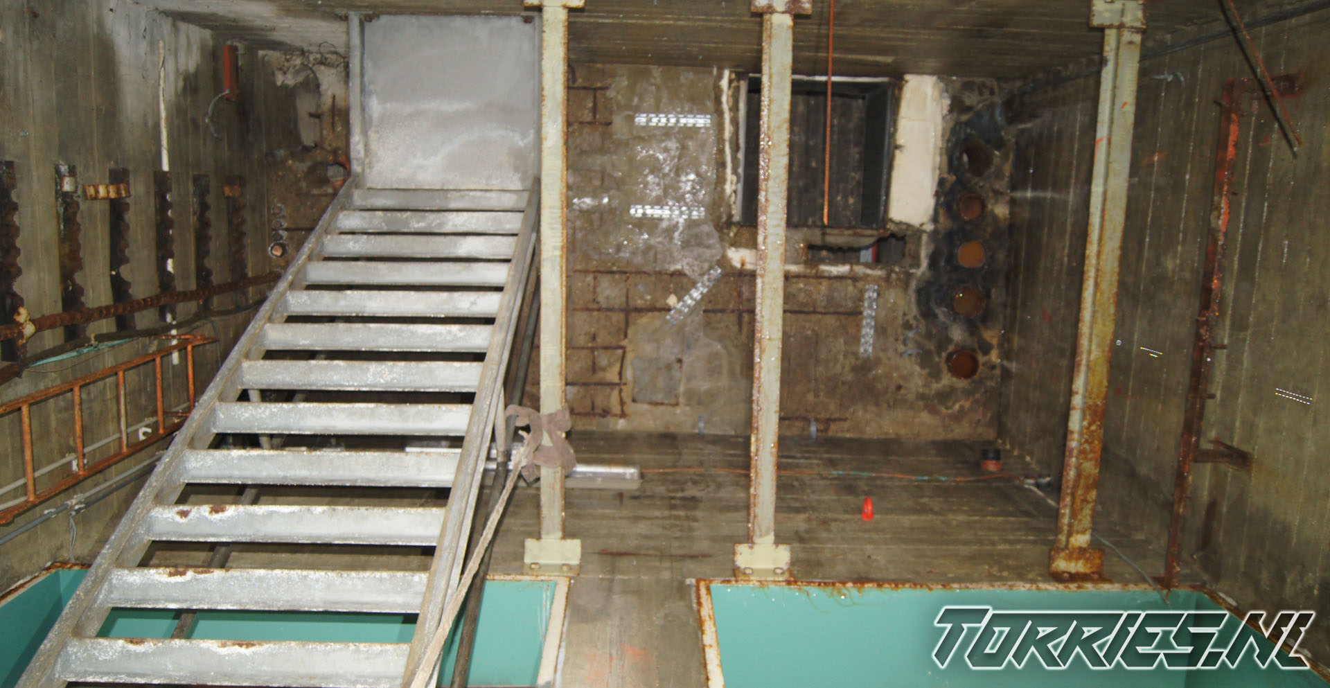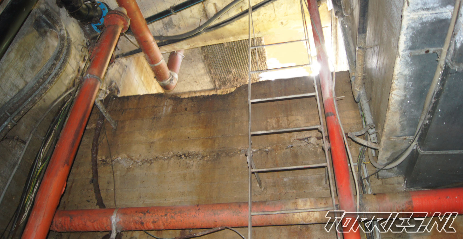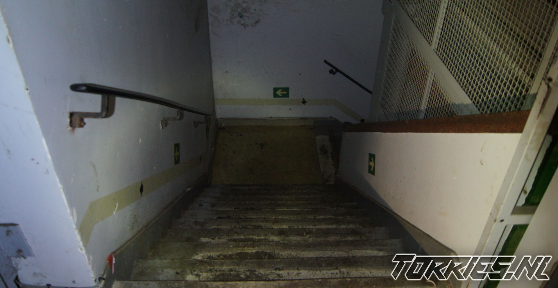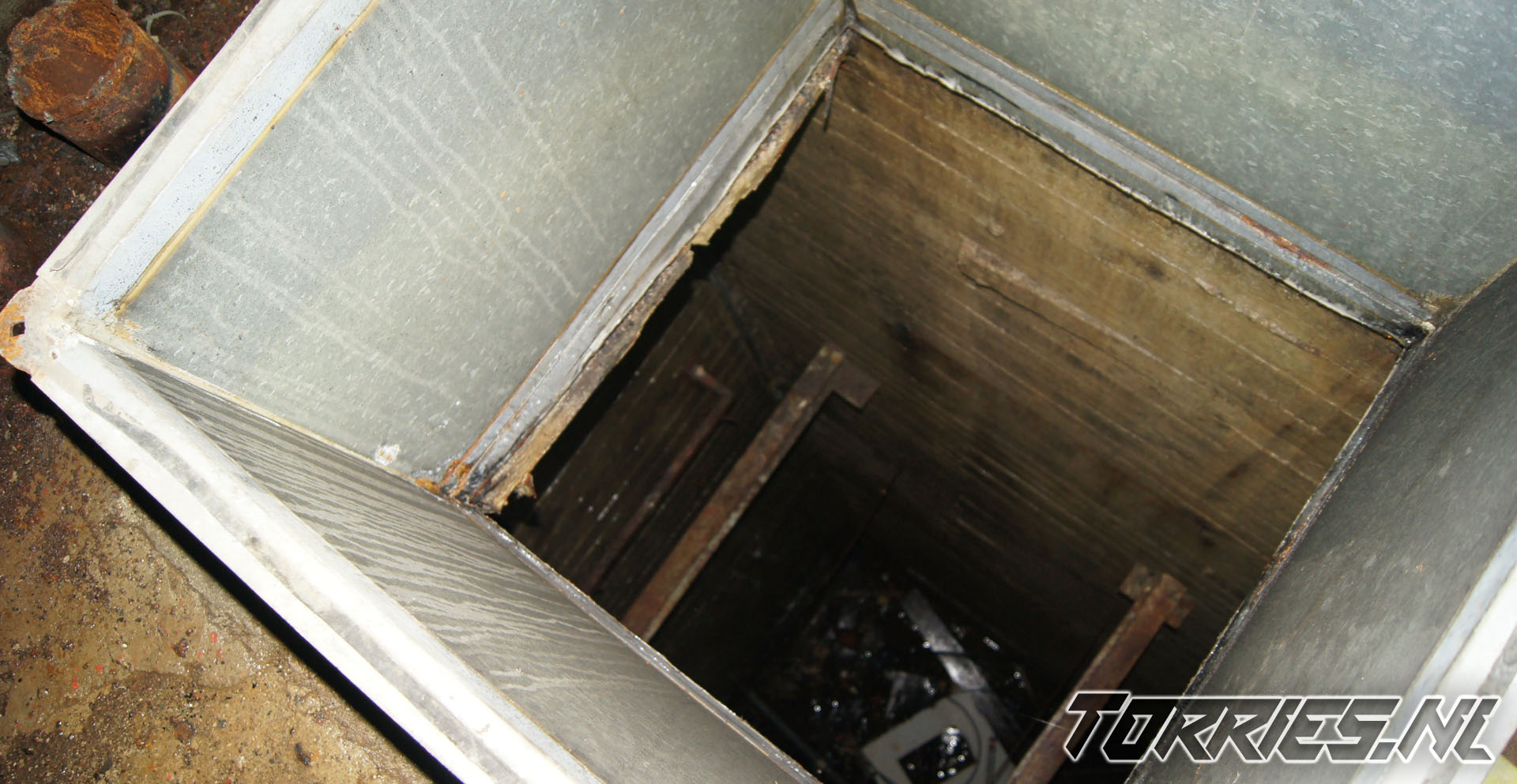 - Instortingsgevaar: De constructie is oud en niet meer onderhouden. Losliggende vloeren, roestige trappen en betonrot maken het gevaarlijk.